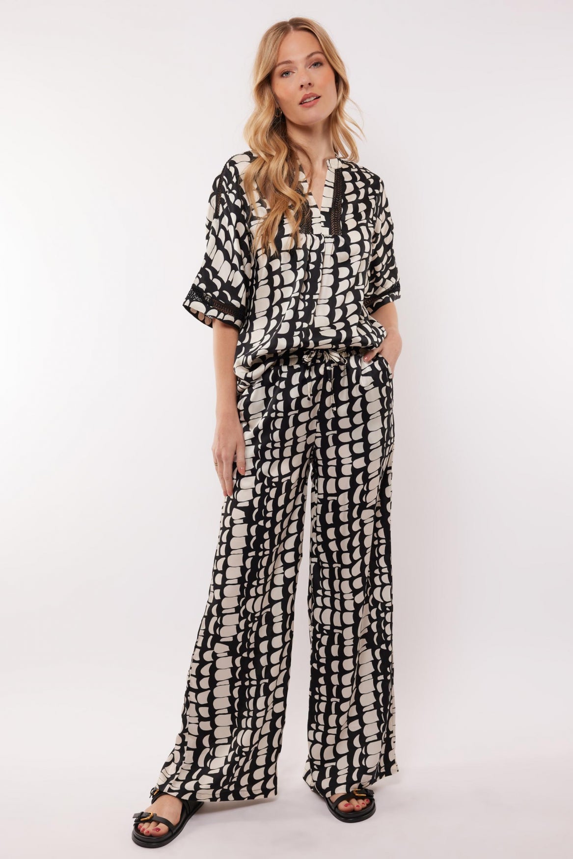 De Belita top heeft een recht model met ruffle mouwtjes en een V-hals. De top is gemaakt van crêpestof en kan als set gedragen worden met de Bessie broek.